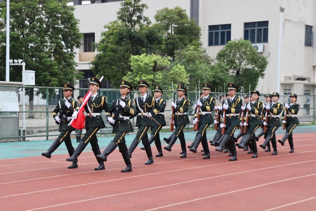 清晨7点整,升旗仪式正式开始。国旗护卫队成员身着整齐的制服,迈着铿锵有力的步伐,他们的眼神坚定,动作协调一致,护送五星红旗走到升旗台前。当国歌奏响,五星红旗在师生们的注目下冉冉升起,迎风飘扬。全体师生肃立致敬,齐唱国歌,心中涌动着对祖国的无限热爱和崇高敬意。