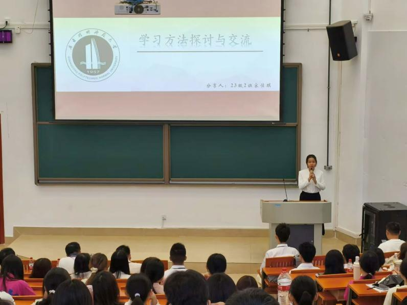 李雪斌传达了全国教育大会的精神,着重强调了学生自我评价与同伴评价的重要性,以此推动学生实现自我成长与完善,力求在德智体美劳心等各方面均衡发展。他高度表扬了在职业规划大赛中脱颖而出的廖雨清同学、黄莹莹同学及分享学习经验的宋佳琪同学,勉励24级新生以师兄师姐为榜样,积极寻找符合自身特点的学习路径,不断开阔视野,树立规划意识,重视体育锻炼,提升各方面综合素养。