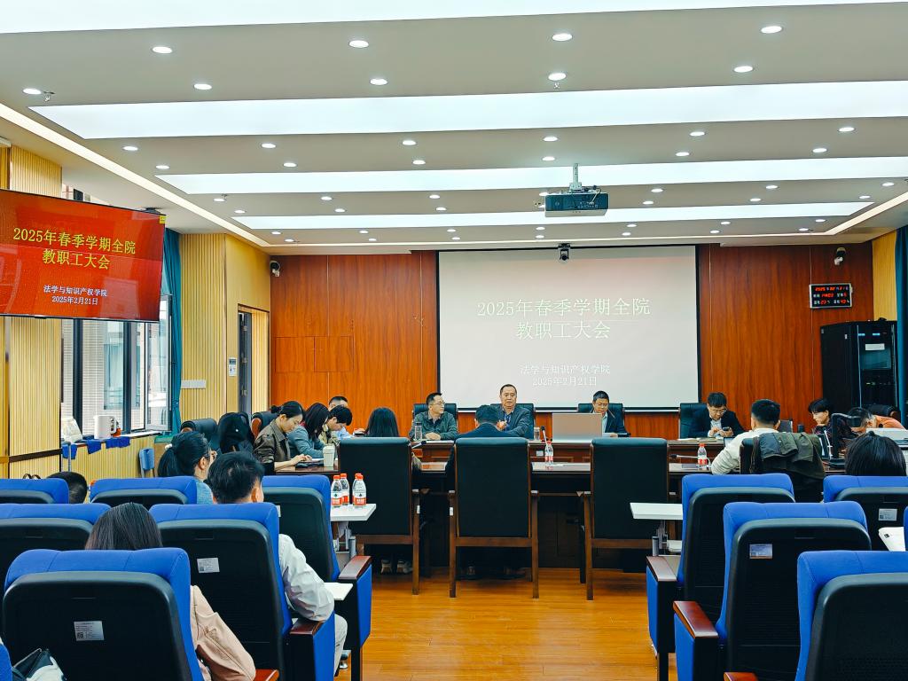 院长黄俊辉布置新学期学院工作。他强调,2025年是学校博士点建设关键年,也是“学科建设年”,学院将紧紧围绕相关文件要求,紧扣粤港澳大湾区发展需求、学校建设要求、学院发展现状,强化师资队伍建设,高标准、高要求进人,并以知识产权硕士点申报、法律硕士点建设、国际法本科专业申报等为抓手,持续推进学科体系优化升级,强化师资人才引进及科研能力,与司法机构、企业、律所的协同联动,推动科研成果转化,助力区域经济高质量发展。