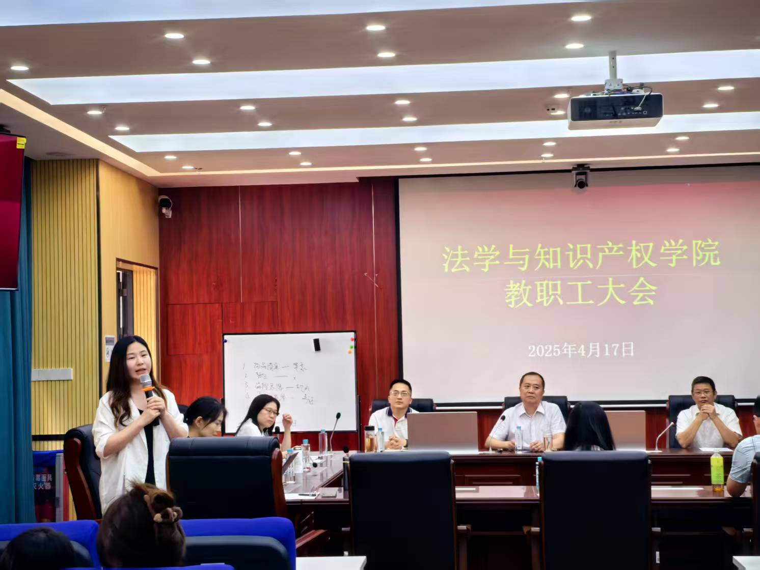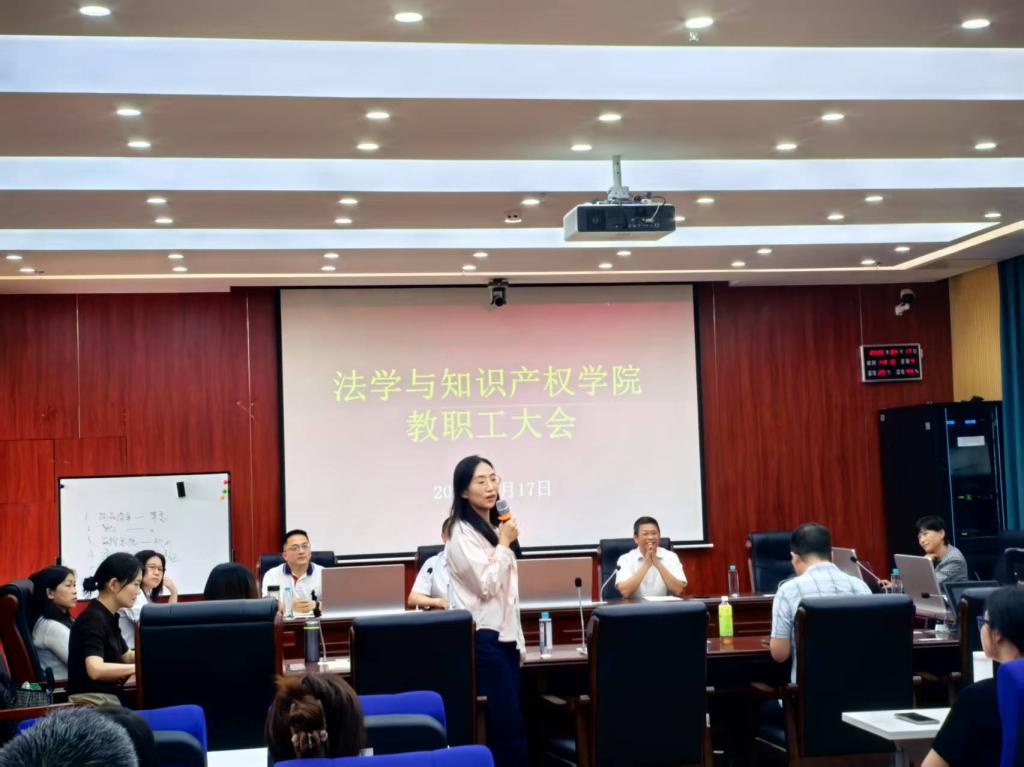 院长黄俊辉重点布置了专业硕士点推进、学科优化调整和师资队伍建设方面等工作,并宣布对系部进行优化调整、筹建国际法系和优化各教研室人员名单。他强调,广大教师要加强师德师风教育,努力提升师德修养,树立良好的师德师风形象,坚定为党育人、为国育才初心使命。鼓励老师们认真上好课,积极参与、大力支持学院的学科建设、专业申报、学系筹建和社会服务等工作。