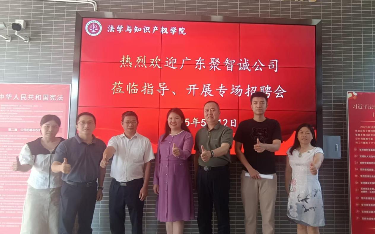 聚焦行业需求,传递职业机遇。招聘会率先在模拟法庭拉开帷幕。北京冠领律师事务所负责人围绕律所发展历程、业务领域及人才培养体系展开介绍,重点解析了法律实务岗位的任职要求与职业发展路径。广东聚智诚公司负责人则结合企业“产学研”融合特色,展示了知识产权管理、技术成果转化等岗位的招聘需求,并强调了对复合型法律人才的需求。两场宣讲内容详实,现场互动热烈,企业代表还就学生关心的职业规划、实习安排等问题进行了细致解答。
