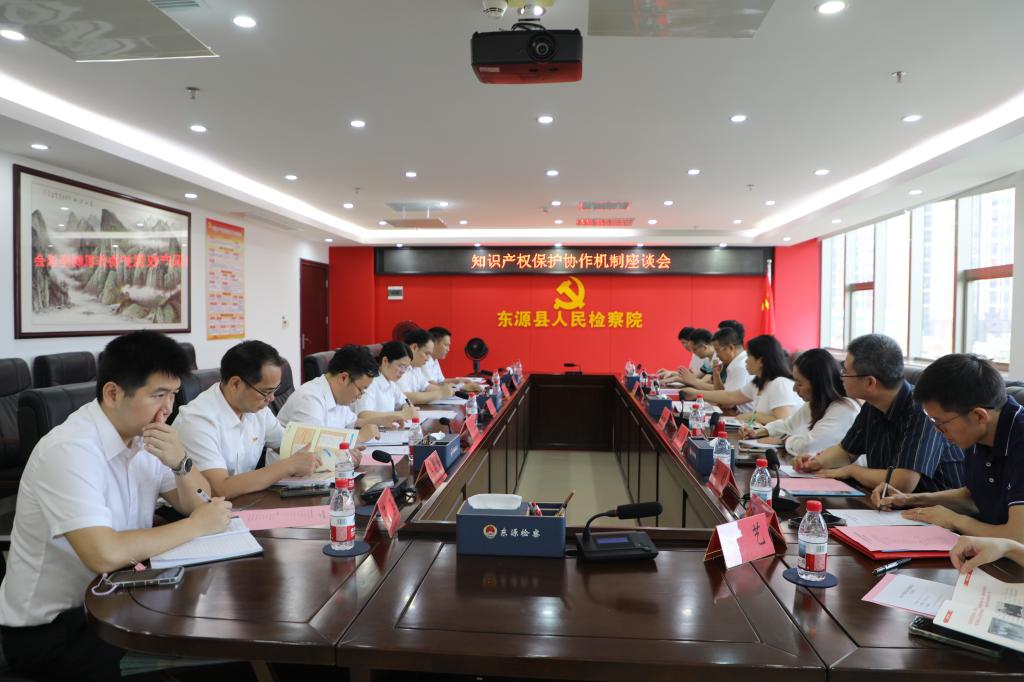 为进一步加强校检合作,促进理论与实践深度融合,为知识产权保护领域培养更多复合型人才,7月4日,我院院长黄俊辉率队赴河源市东源县人民检察院开展合作共建活动。东源县人民检察院党组书记、检察长谢雄青,党组成员、副检察长陈肇武,副检察长黄艾华,第一检察部主任叶日康、第二检察部主任张聪、第二检察部副主任陈丽娜,我院知识产权系主任王渊、副主任董凡,知识产权科研团队党支部书记林蔚,副教授杨源哲、汤贞友、李钊和博士谭洋、陈艺等参加活动。
