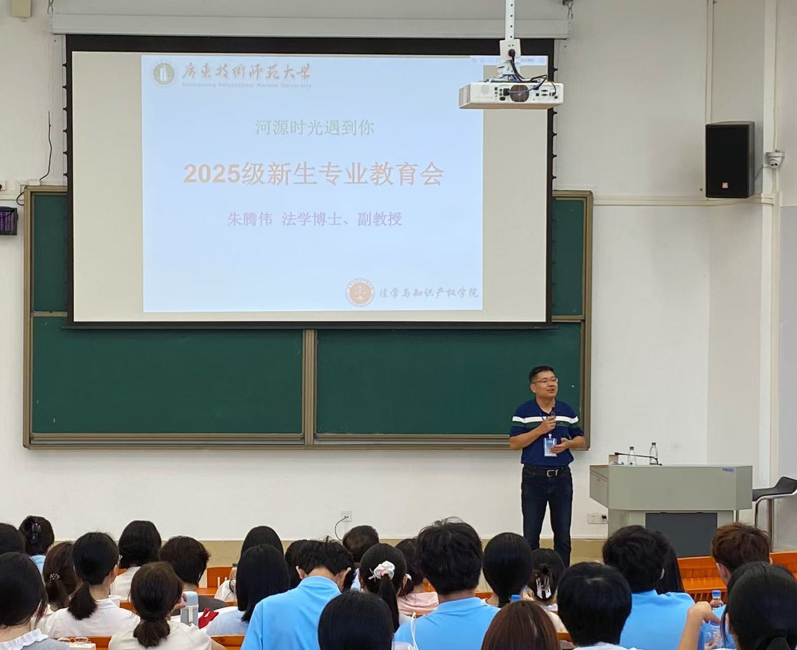 为助力我院2025级新生快速适应大学生活、清晰规划学业发展方向,我院于9月12日上午在河源校区开展新生专业教育。专业教育分别由学院法学科研团队党支部书记、法律系副主任朱滕伟博士和知识产权系徐璐博士后主讲,学院教师代表、新生班主任、辅导员以及2025级全体新生共同参会。
