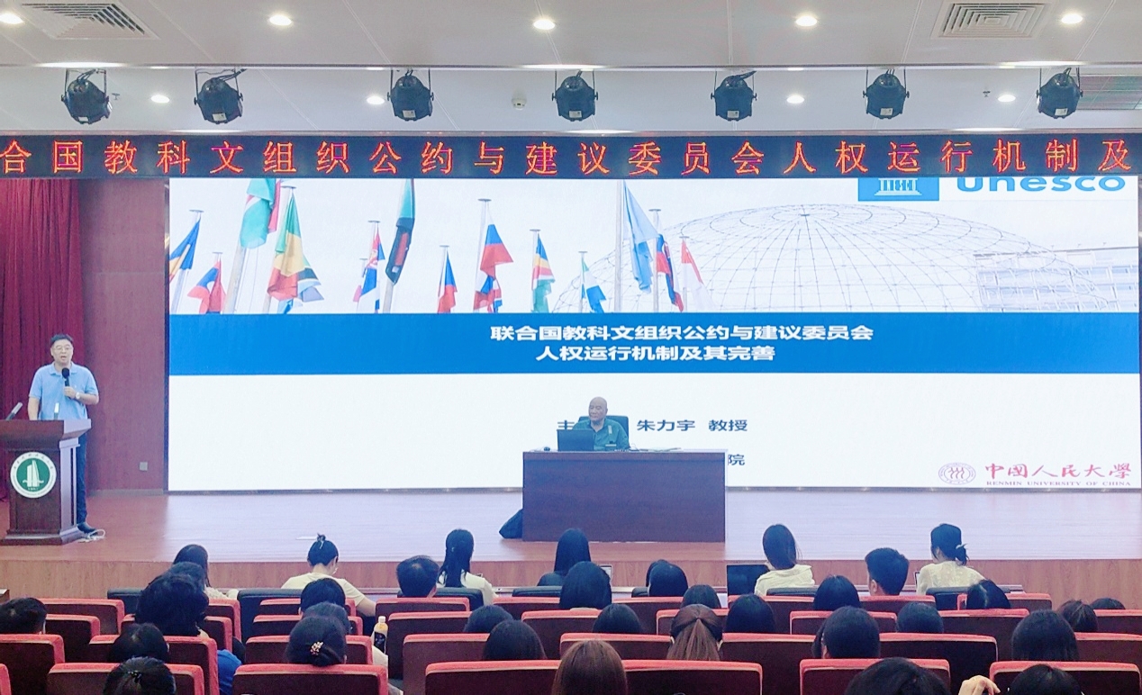 朱力宇围绕联合国教科文组织的人权运行机制,系统阐述了:联合国教科文组织的宗旨和机构设置;公约与建议委员会的组成、成立过程、性质及职权;公约与建议委员会行使第一项职权及其审议程序;公约与建议委员会行使第二项职权及其审议程序;公约与建议委员会审议机制存在的若干问题;中国在教科文组织中的影响力及话语权建设。朱力宇还结合自身丰富经历,通过案例详细介绍了中国代表如何灵活运用相关法律法规,坚决捍卫国家立场,生动展现了中国在国际人权事务中的智慧与担当,彰显了中国在国际舞台上的坚定姿态和理性力量。