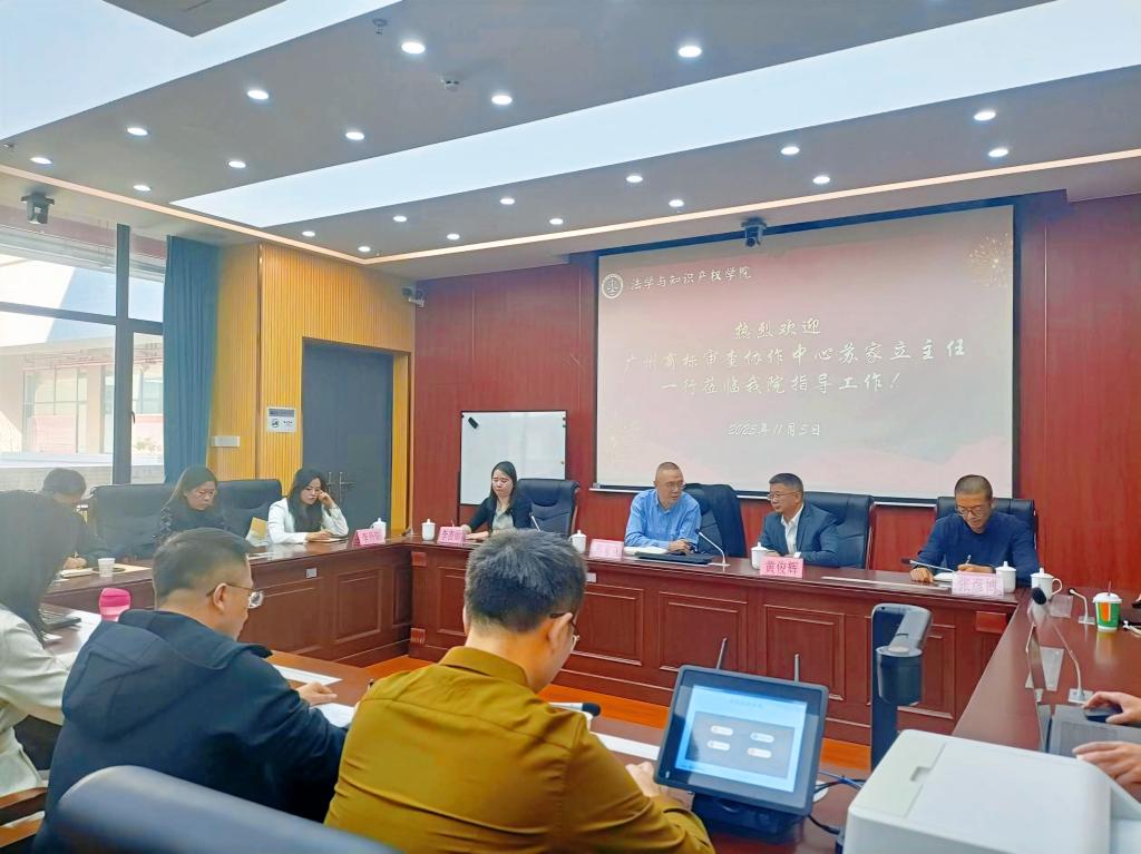 11月5日上午,广州商标审查协作中心(广东省知识产权开发与服务中心)副主任苏家立率队莅临我校白云校区调研交流,中心分析评议部负责人张彦博、交流培训部负责人李杏仙、李秋燕、李丹阳等一同参与调研。williamhill威廉希尔官网院院长黄俊辉、党委副书记李雪斌、副院长肖扬宇、知识产权系主任王渊、党支部书记林蔚和全体知识产权系教师参加会议。