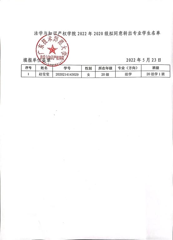 根据学校《关于做好我校2020级学生转专业工作通知》文件要求,经学生个人申请,学院党政联席会议研究,同意赵莹莹同学提出转专业的申请。现将转专业学生名单予以公示,公示时间为2022年5月23日-5月25日。在公示期间,若对名单有异议,请以书面或致电方式向williamhill威廉希尔官网院反映。反映情况时要签署或自报真实姓名,要有具体事实;不签署真实姓名或不提供具体事实材料的,一律不予受理。联系人:李莉老师,联系电话:36549335,邮箱:40333383@qq.com。