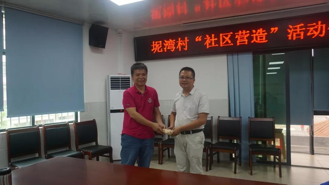 ,进行了捐赠仪式。当地企业家林总表示,非常感谢两委给予与广东技术师范大学互动的机会,对于坭湾村的过去发展他是感同身受,因此建设新农村,营造新家园,作为企业家也要贡献自己的力量,必定为建设新坭湾全力以赴。