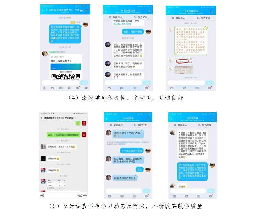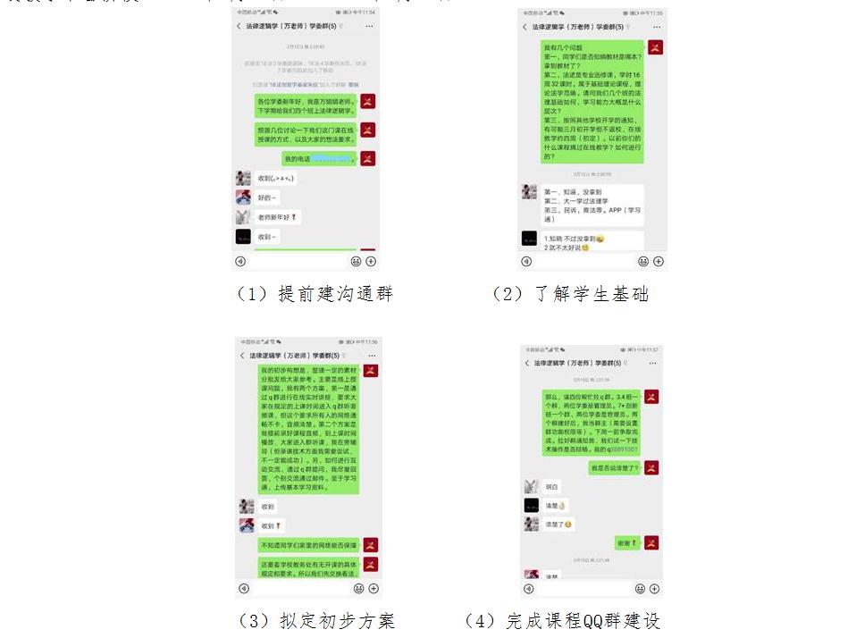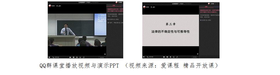 教学团队反复验证教学平台功能与课程教学需求之间的匹配度,最终选择主要通过QQ群课堂及爱课程资源完成教学。群课堂提供了便捷、清晰而新颖的沟通方式,爱课程的优质课程资源不仅能带领学生思考,还能给学生提供法律(理论和实践)需求的模范式表达。法律逻辑学着重引导学生启动思辨、充分表达,这些任务的完成通过群课堂都可以做到。不定时签到功能、课上讨论投票功能、分享屏幕功能、播放视频和幻灯功能、个体连麦发声功能、群体发声讨论功能、文字辅助说明功能、随时观测课堂人数功能等,辅助以群文件发布,基本可以完成本课程所需的教与学任务。