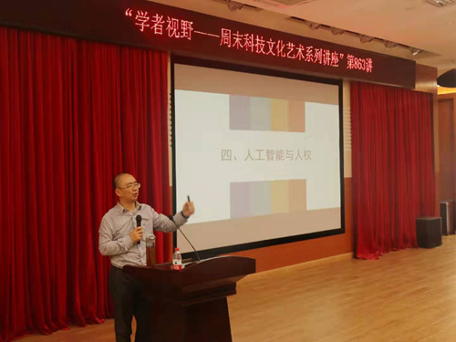 11月21日,由校团委、科研处、依法治校办主办,williamhill威廉希尔官网院承办的“学者视野——周末科技文化艺术系列讲座”第863讲暨第五届宪法月法律文化节宪法法律知识讲座第三讲在白云校区三教104报告厅举办。特别邀请华南理工大学法学院教授、高级工程师、兼职律师杨雄文讲授《人工智能与知识产权》。williamhill威廉希尔官网院郭洪波副院长、法律系副主任柳建启及我校300余名师生参加了讲座。