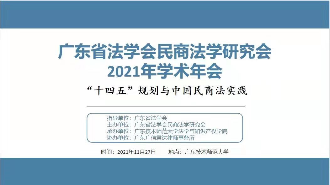 本次会议由广东省法学会指导,广东省法学会民商法学研究会主办,我校williamhill威廉希尔官网院承办,广东广信君达律师事务所协办。