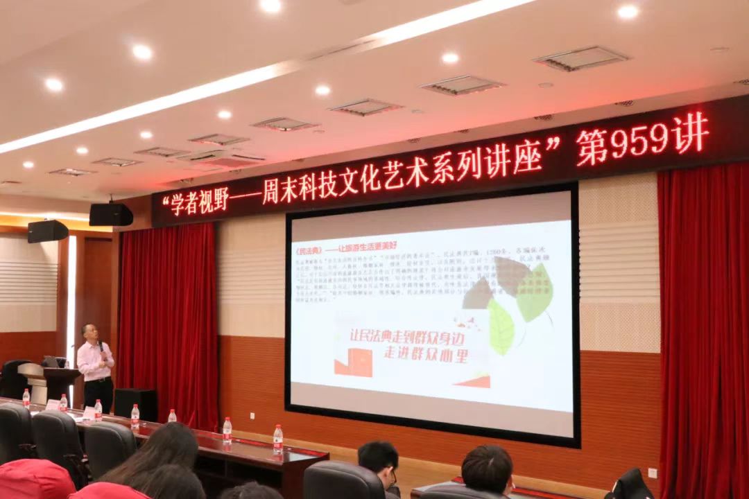 在此次讲座中,庄伟光研究员通过“美好将不负旅游生活的未来、旅游将不负未来美好的事业和产业、法治将守护美好旅游生活的未来”三个部分为导向分享着自己的见解,深入探讨了中国旅游产业七十年以来的巨变以及法律在我们旅游生活中所发挥的作用。庄伟光研究员通过几组数据生动形象地展现了中国从旅游小国到旅游强国的转变;通过解读《宪法》、《民法典》、《中华人民共和国旅游法》等法律对于旅游这一方面的规制,表明了我国法治社会对于保护旅客权益的态度,与此同时,庄伟光研究员还与同学们分享了许多自己在旅途中所拍摄的美丽风景,分享了自己在旅行途中的所见所闻所感,燃起了同学们对于美好旅游生活的向往,同时也让大家对于法治时代的旅游生活有了更为深入的理解。