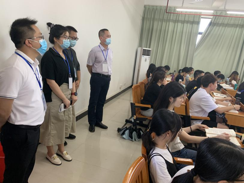 为确保本学期教学工作有序开展,全面掌握教学运行情况,8月30日,开课第一天,学院党政班子许建鑫、黄俊辉、李雪斌、李小萍、专职辅导员胡晨波等,率领学院辅导员,深入师生课堂检查教学情况。