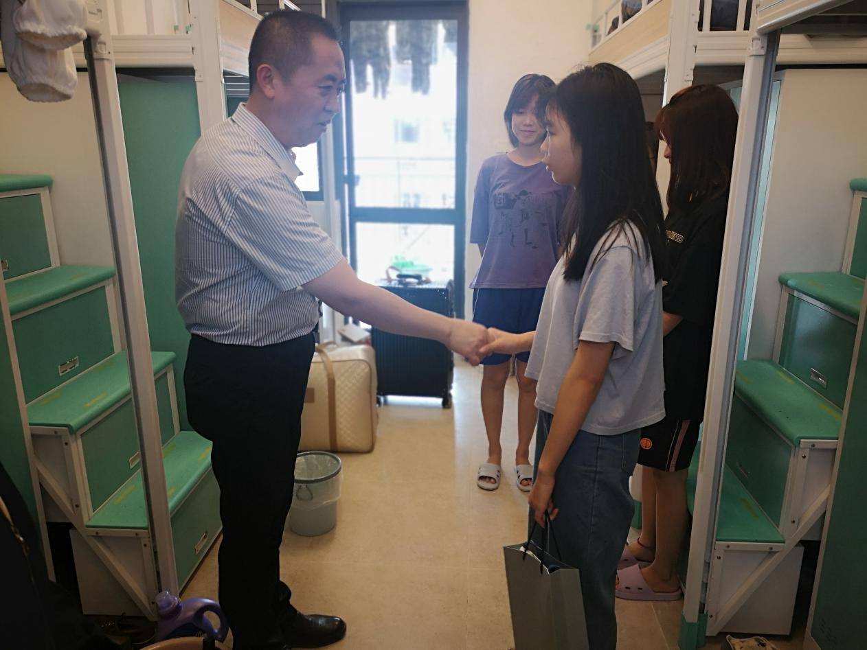下午,在学院许建鑫书记、黄俊辉院长的带领下,各新生班主任、辅导员分组走进学生宿舍,与学生暖心沟通交流。在与学生的互动中,学院领导、班主任、辅导员了解到新生对河源校区建设的关注,细心解答了学生的疑问,帮助学生转变思想,及早进入大学的学习与生活。学院领导还为经济困难学生代表送上“爱心礼包”。