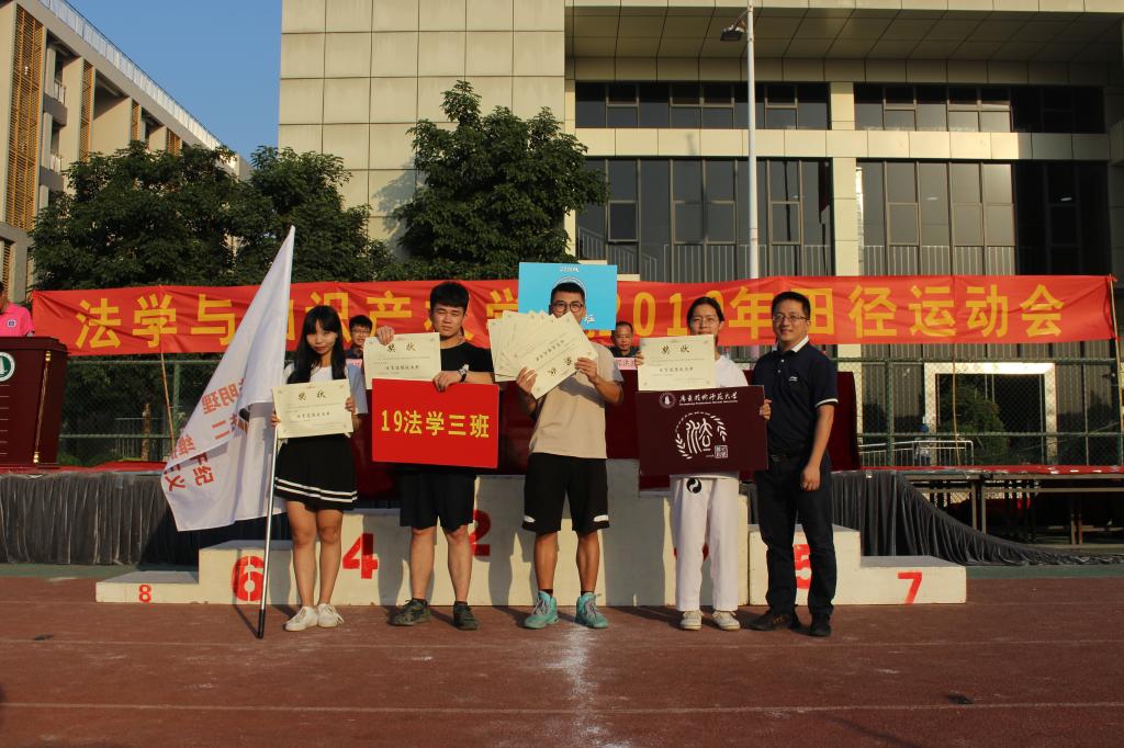 本届运动会共有男女子100米、1500米、跳高、跳远、铅球等26个项目,为历年赛项、参与人员最多的一届。本届运动会自上午9时至下午15时30分结束,共产出多项单人奖项和集体奖项,其中体育道德风尚奖获奖班级包括18法学1班、18法学创新班、19法学3班;大本营装饰奖获奖班级包括一等奖19法学3班、二等奖19法学6班、三等奖18法学4班。