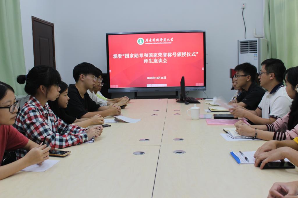 会前,学院以主题团日形式,组织各团支部集体观看中华人民共和国成立70周年大会、国家勋章和国家荣誉称号颁授仪式,学习习近平总书记重要讲话,撰写心得体会并组织团支部分享会。
