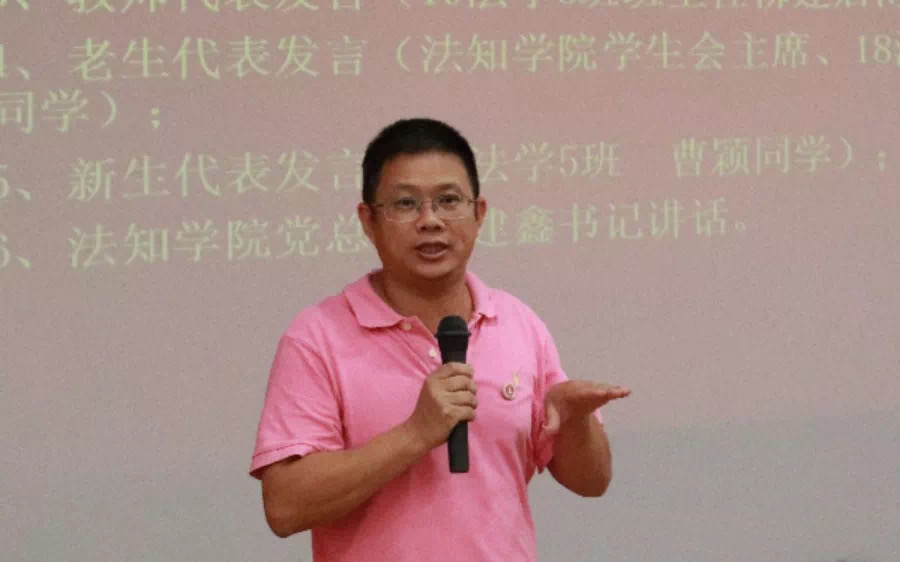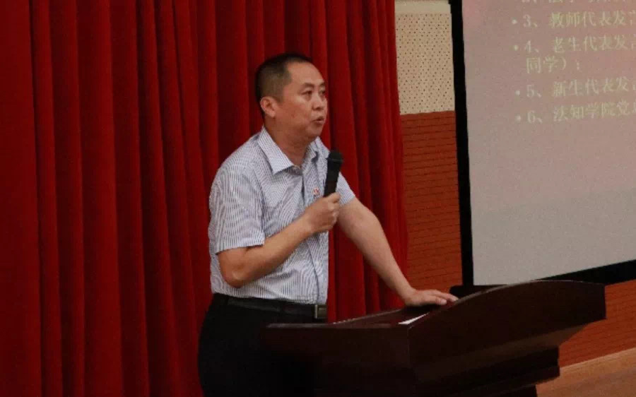 随后,柳建启博士作为教师代表发言。柳博士对如何度过大学四年,成为合格法律人提出了几点期望:一是要通过律师资格考试二是要认真学习知识改变命运,独立思考,要坚持读书三是要学会感恩和珍惜感恩父母,老师,伟大祖国珍惜身边师长同学,懂得尊重他人四是要珍惜学习机会不要沉迷游戏和兼职五是要珍惜身体健康。勤运动,打造好体魄,少吃外卖。柳博士最后寄语新生,要志存高远,成为时代精英。