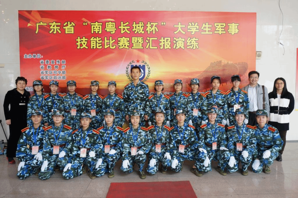 2015年11月14日上午,我院22名新生代表学校参加广东省“南粤长城杯”大学生军事技能比赛。在这次的比赛中,学校领导高度重视,学校学生处全翠珍副处长、政法学院党委陈军副书记、政法学院辅导员刘文静带队参加比赛。