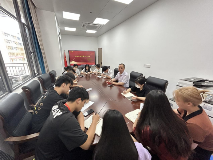 为深入开展学习贯彻习近平新时代中国特色社会主义思想主题教育,树立样板支部的引领作用,把高标准严要求的党建工作抓实抓细,提高基层党务工作者的业务能力,推进基层党组织标准化规范化建设,进一步提升党建工作水平,5月29日,我院党务工作中心在白云校区第三实训楼301会议室召开5月份第4次党务工作例会,我院党委书记许建鑫莅临指导,学院第一创新创业党支部书记伍龙妙主持会议。
