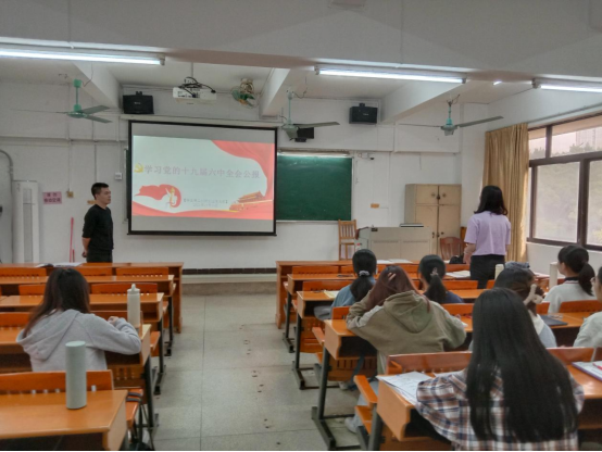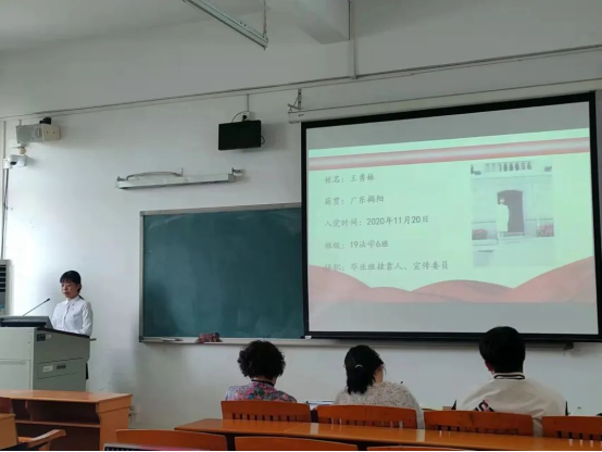 首先,由会议主持人朱省志老师向大家报告了会议的出席情况,发展对象冯紫琪同学因在家备考由余婕同学代为发言,全体党员到场出席。