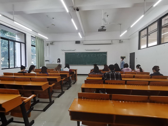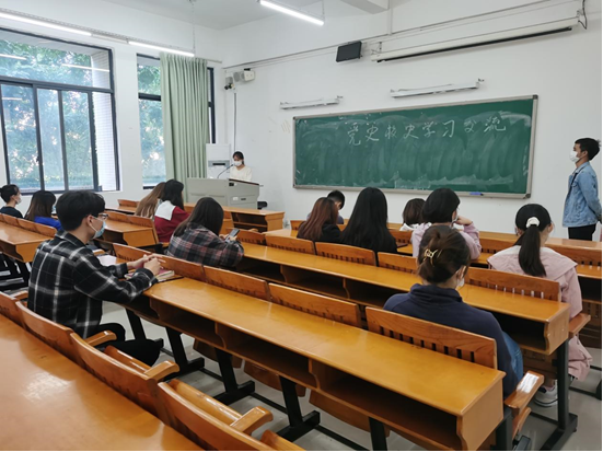 通过户外党史校史学习教育后,第一小组转入到教学楼教室内进行党史校史学习心得交流。