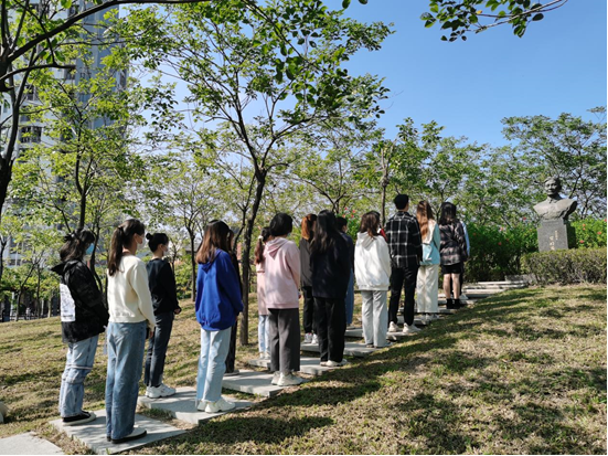 2021年10月24日,williamhill威廉希尔官网院2021-2022年度第一批入党积极分子党校党课培训第一小组到达白云罗明同志雕像前进行党史校史学习。首先,同学们学习了习近平总书记“七一”重要讲话精神,通过学习讲话,同学们进一步了解了中国共产党的百年历史进程,并对做一名“做有志气有骨气有底气的新时代青年“有了更进一步的理解和体会。