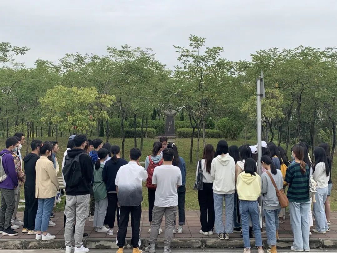 其后,积极分子们首先前往了罗明同志的雕塑前进行学习,李安昊同学向同学们再次介绍罗明同志的生平以及先进事迹。