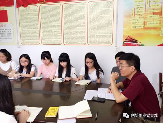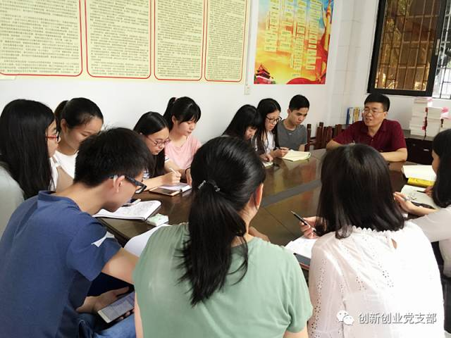 2017年4月21日,党建工作经验丰富的学生工作处科长叶顺文同志和创新创业党支部所有同志,包括支委和其他党员,针对党员标准,党性修养,党支部发展,个人成长等多方面内容,于党支部会议室(7101)开展了经验交流会议,从而更好地提高党员的思想意识,端正和坚定党员的立场和定位。