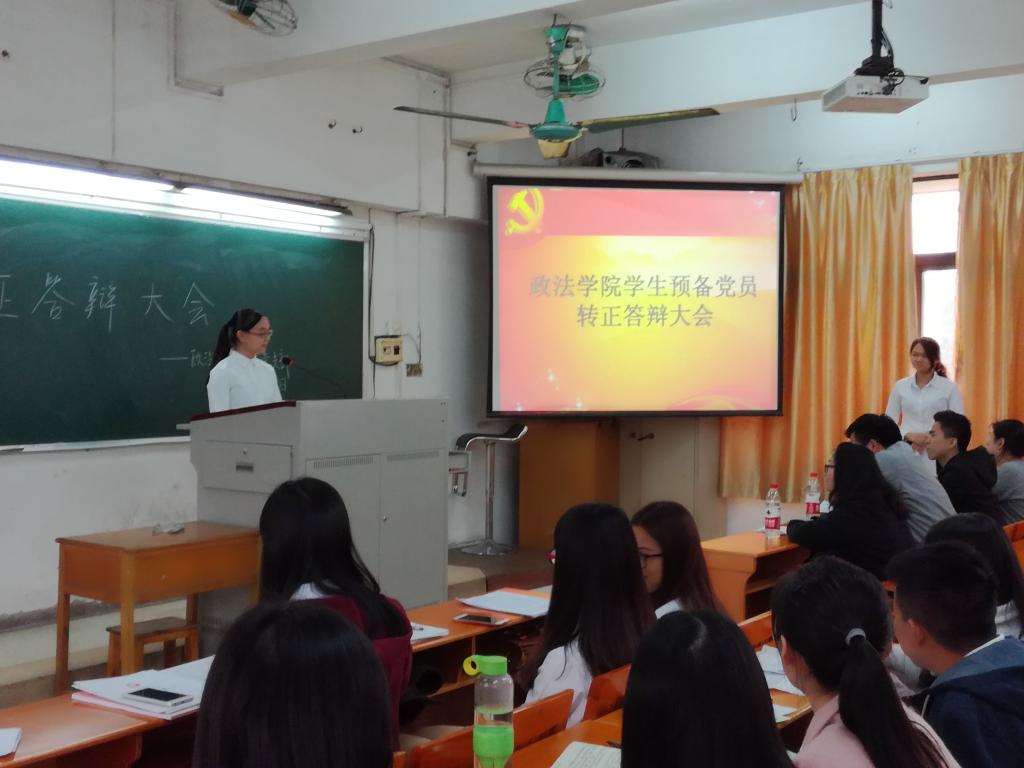 12月15日下午,政法学院预备党员转正答辩会在A栋403教室举行。学院党委陈军副书记、辅导员赵璐老师和学生党支部书记担任评委。来自各学生党支部的13名预备党员参加了答辩。
