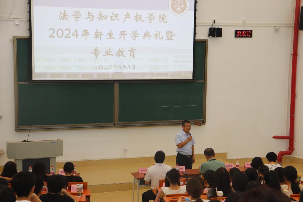9月8日,学院在河源校区博学大讲堂206室召开2024级新生开学典礼暨专业教育大会,学院班子成员、系主任、教工党支部书记、24级新生班主任、党政办公室主任和辅导员参加。学院党委副书记李雪斌主持开学典礼。首先黄俊辉致欢迎辞,对新同学们的到来表示热烈欢迎,他介绍了学校和学院的发展历程、师资力量和未来发展目标,寄语新生不忘选择广师大williamhill威廉希尔官网院的初心,珍惜大学4年时光增长专业知识,在追求公平与正义中实现个人人生价值。许建鑫从确定自己的目标、养成良好的学习生活习惯和认识专业做好职业发展规划等三个方面对全体新生提出希望和要求,勉励同学们树立远大理想,牢记习近平总书记的勉励“将自己的命运同国家民族的命运紧紧联系在一起”,珍惜大学时光,扎实学习理论基础,脚踏实地实现跨越。学院教师代表李想博士、2024级法学3班刘静怡分别作为新生班主任代表和新生代表发言。