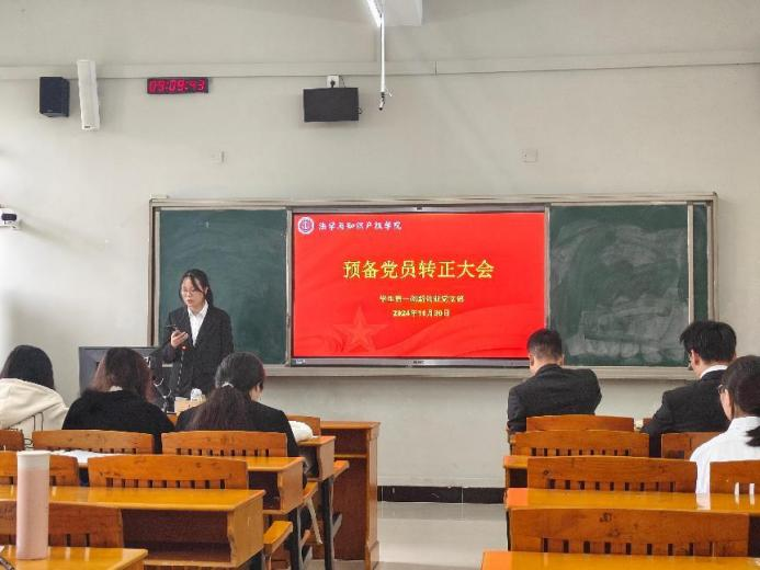 在学生第一、第二、第三创新创业党支部预备党员转正大会上,预备期满的预备党员宣读了转正申请书,支部2名正式党员对预备党员的情况作介绍。在充分讨论预备党员的现实情况后,支部正式党员对预备期满的预备党员进行逐一无记名投票表决。表决结果为:通过本批10名预备党员按期转为正式党员。