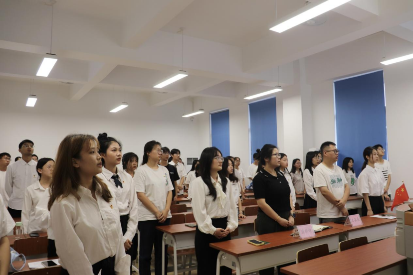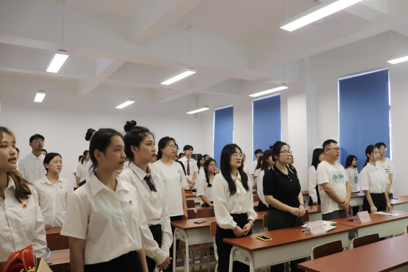 团旗飞扬迎新人,青春献力二十大。为深入贯彻落实党的二十大精神,切实加强共青团队伍建设,不断为团组织注入新鲜血液、增添新的活力,培育有理想、有本领、有担当的社会主义建设者和接班人,6月1日晚,我院团委在河源校区举行了2023年新团员入团仪式。本次新团员入团仪式由张嘉薇主持,有辅导员蓝雅婧、王嘉晨和90余名新老团员参与,共同分享这令人激动而光荣的时刻。