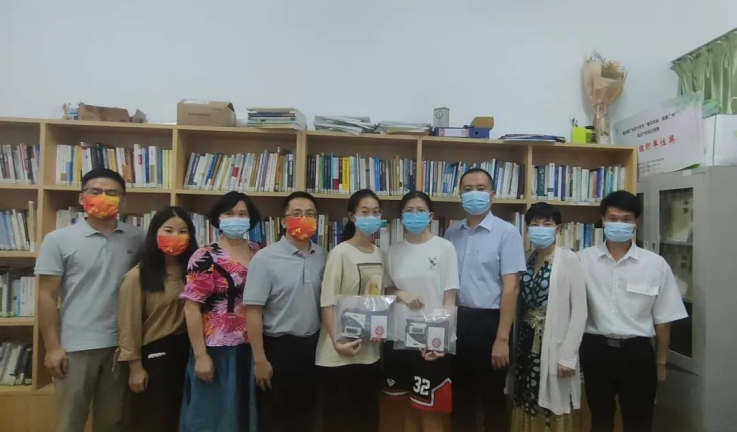 最后,参会领导们为支教学生们送上了爱心礼包,预祝徐漫贞同学、李海婵同学支教之行一切顺利。