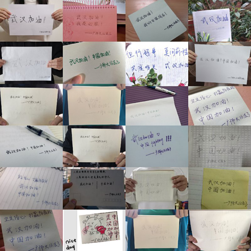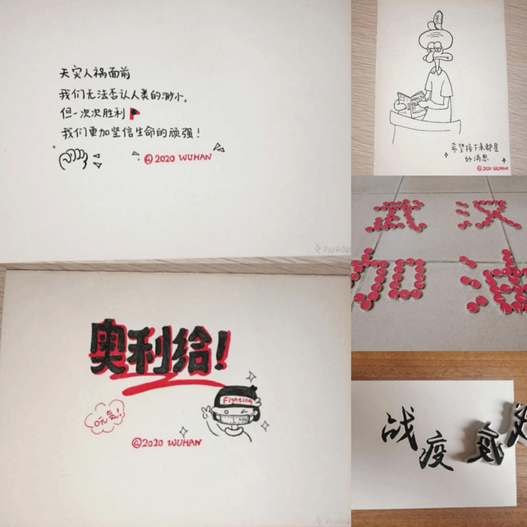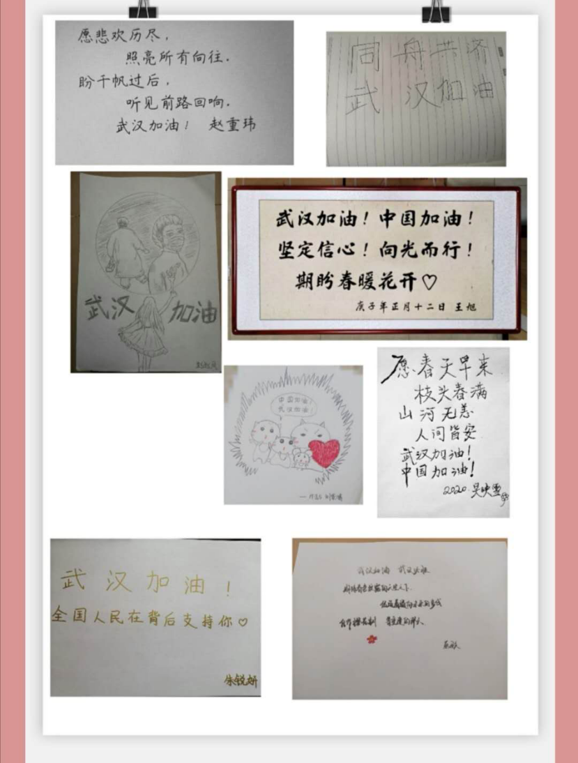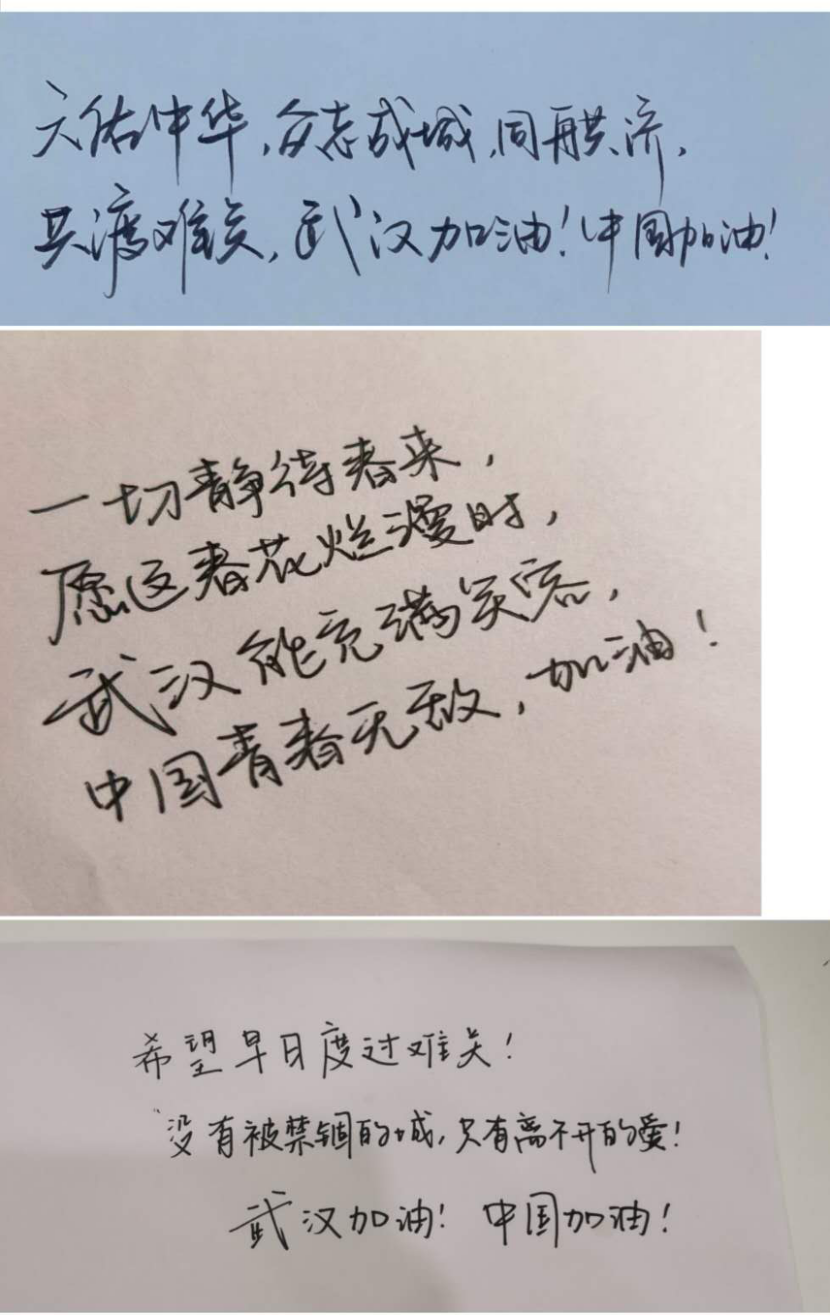 18法7的他们手写下自己真挚的祝福,为武汉为中国加油。