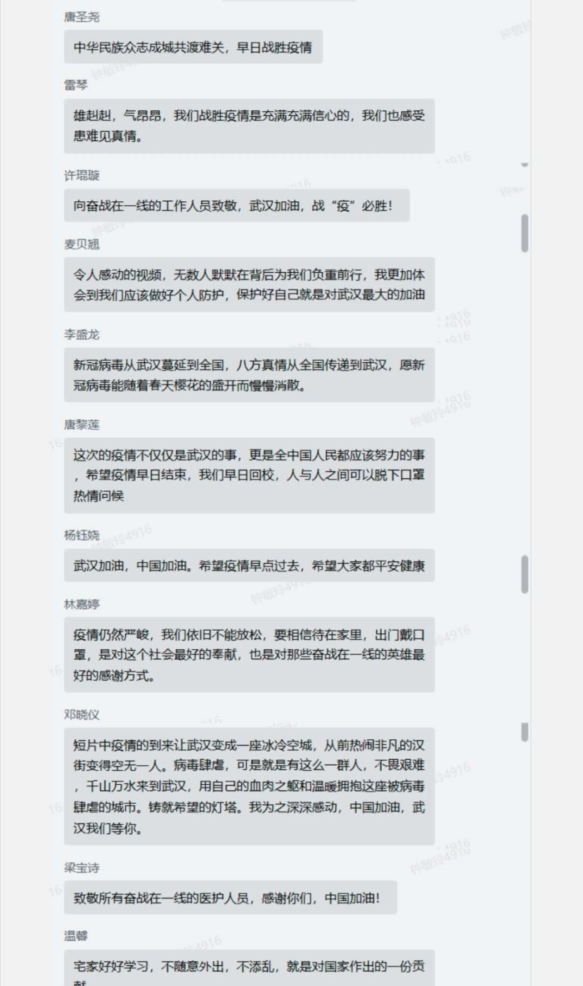 16法1的同学们积极关注疫情最新状况,共同为中国、为武汉加油!
