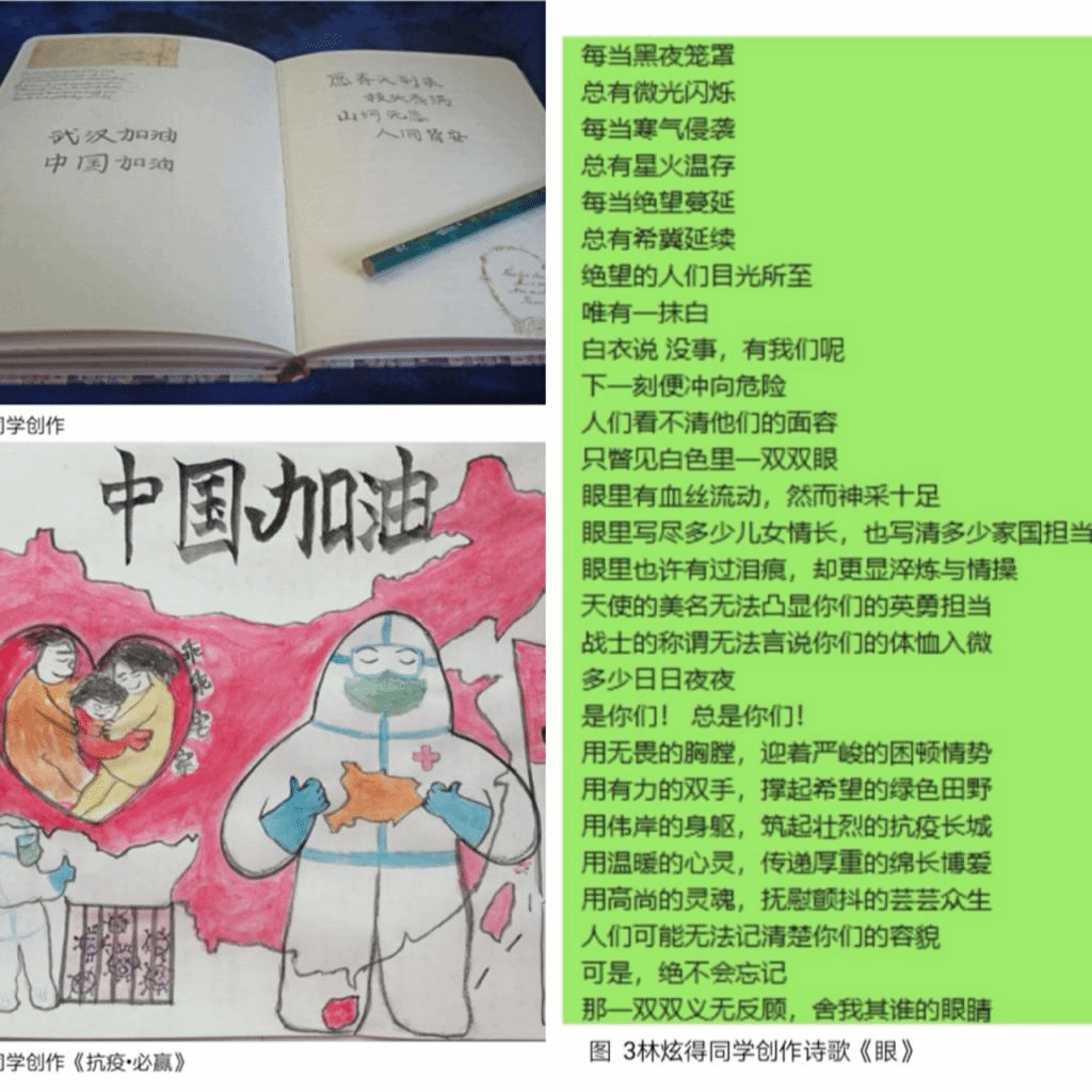 18法创的他们写诗画画,相信只要同心协力,抗疫必赢。