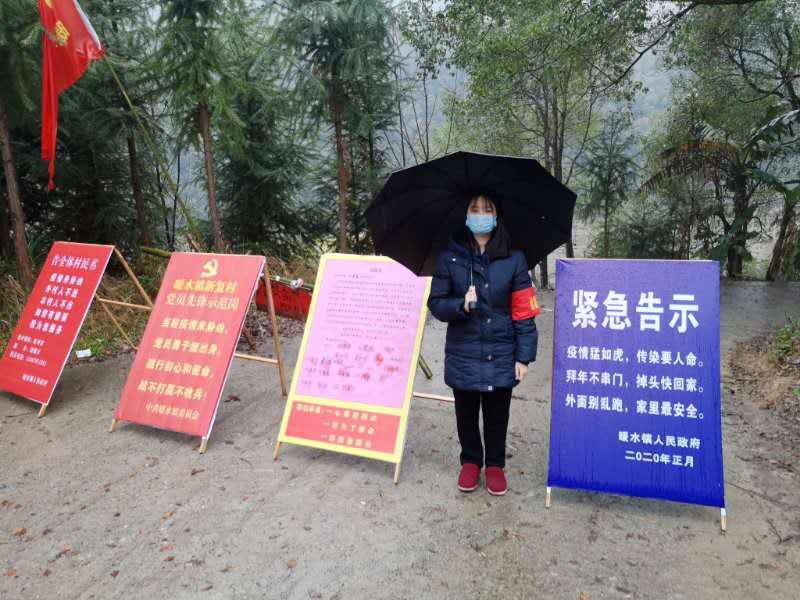 18法学2班的盘丽梅同学,在广东省清远市南岗村防疫临时卡点登记外来外出人员、量体温、宣传病毒的严重性与其注意事项。