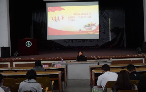 第二环节,政法学院团总支书记陈惠扬老师为2016级新生教授团课,与各位团员共同学习团史团章。陈惠扬老师首先与大家进行了一场互动,了解到大家向团、党组织靠拢的热情,接着分别简介了团的内涵、团的性质、团徽的代表意义、团旗与国旗的紧密联系、团员的身份、团情团史、学院的团总支设置结构及各职位的职责与分工。最后,陈老师用梁启超的话——“少年强则国强”以及自己的大学亲身经历为例,鼓励大家早规划,学为先。这让同学更加透彻地了解到了共青团和作为一名团员的责任感,也让同学们在日后的学习生活中能够将自己的大学生涯做到早规划,学为先。