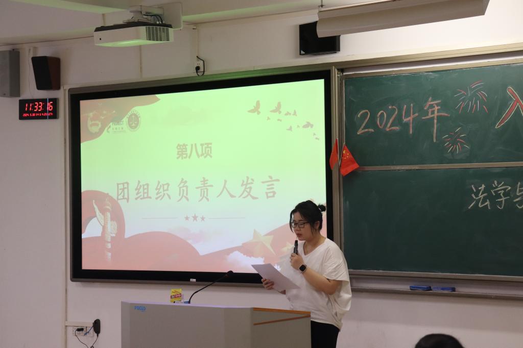 在仪式上,王欣怡、王智作为领誓人,带领新团员们在仪式上进行了庄严的入团宣誓。其次,入团介绍人代表梁伊伶、曹露宣读了团章,带领团员们认真学习团员的权利和义务,让新团员们更加明确了自己的责任与使命。接着,老团员代表甘月敏、苏睿发言。她们向新成员们表示由衷祝贺与欢迎,并向新团员寄予厚望,希望新团员能坚定理想信念,在行动上挥模范带头作用。