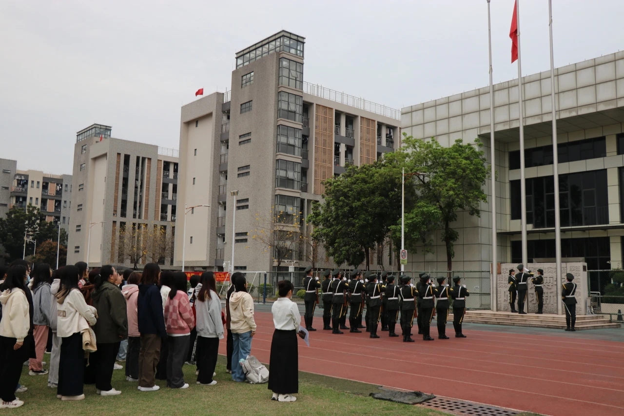 清晨7点,国旗护卫队托举国旗整装待发。他们眼神坚定,声音洪亮。国歌奏响,百余名师生齐唱国歌,注目五星红旗冉冉升起。