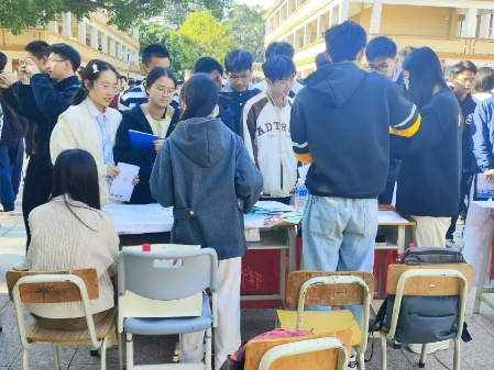 为响应国家社会实践育人号召,助力学校拓展优质生源,一支法知青年团队于1月23日走进海丰县彭湃中学,开展寒假招生宣传活动。从精心设计的文创周边到妙趣横生的专业科普游戏,从干货满满的政策解读到真情流露的校园故事分享,团队通过"摆摊咨询+班级宣讲"双线并行的方式,向每一位怀揣梦想的高三学子传达广师大的办学理念,展示着独属于广师大的青春活力。