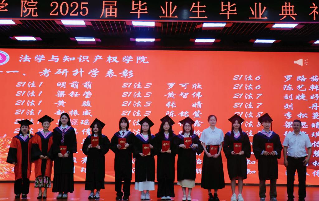 典礼最后,全体齐唱校歌。在热烈的掌声中,2025届毕业生们依次与老师们握手告别,愿毕业生们秉承“厚德博学,唯实求新”的校训精神,在法治中国建设中贡献广师大力量!