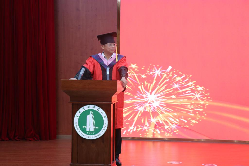 学院党委书记许建鑫鼓励毕业生们要怀着感恩之心,以信念为帆,以学识为桨,在充满挑战的社会浪潮中坚定前行,并叮嘱大家有空常回来看看。他期待同学们在民族复兴的伟大征程中勇立潮头、破浪前行,用奋斗书写无愧于时代的精彩人生。