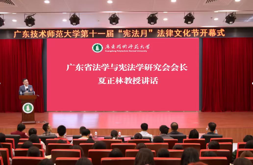 11月6日,我校第十一届“宪法月”法律文化节开幕式在白云校区顺利举行。广东省法学与宪法学研究会会长、华南理工大学党委统战部常务副部长夏正林教授、学校依法治校办公室法制科负责人、我院党政领导班子、教师和学生代表共300余人参加开幕式。