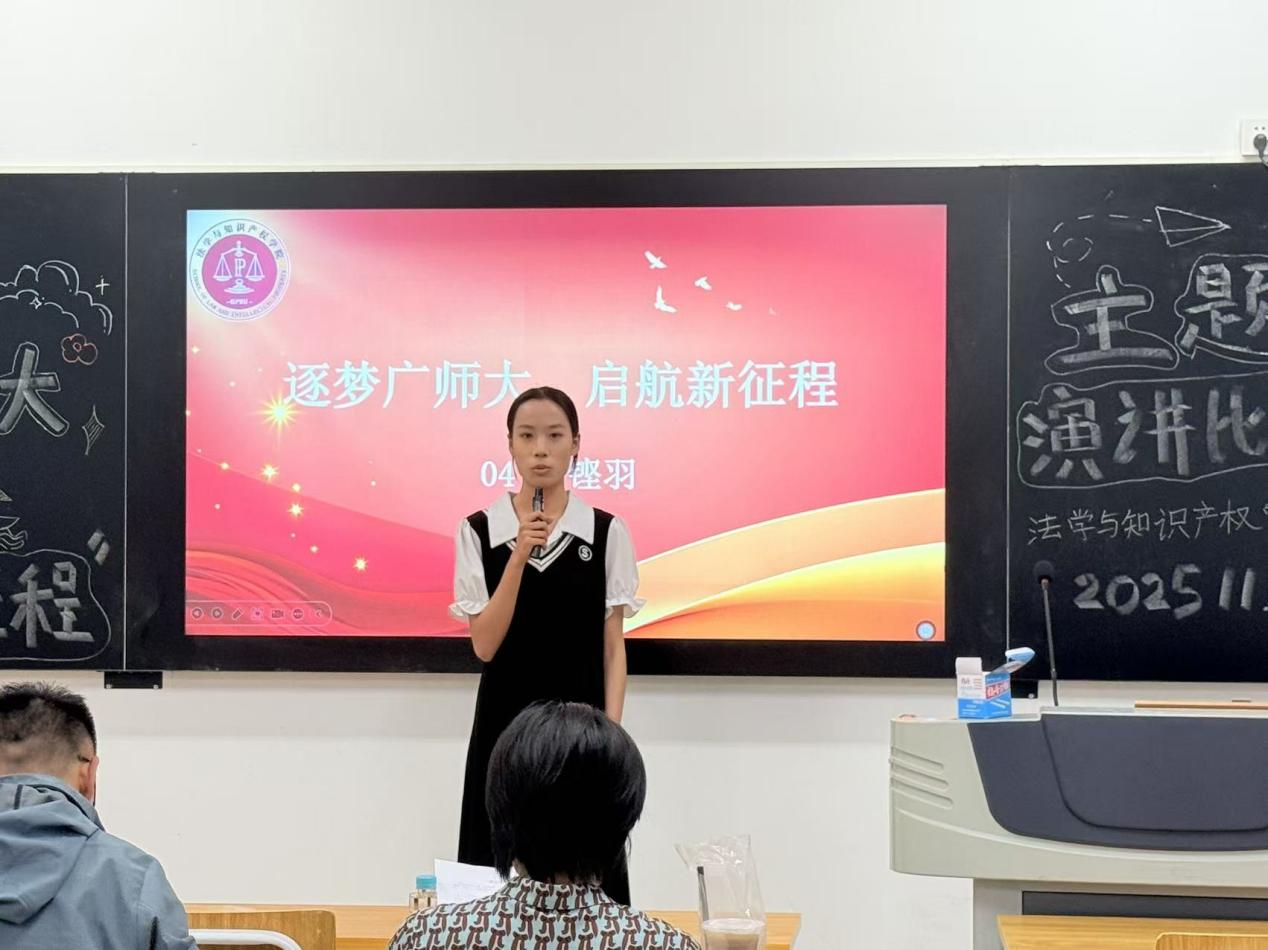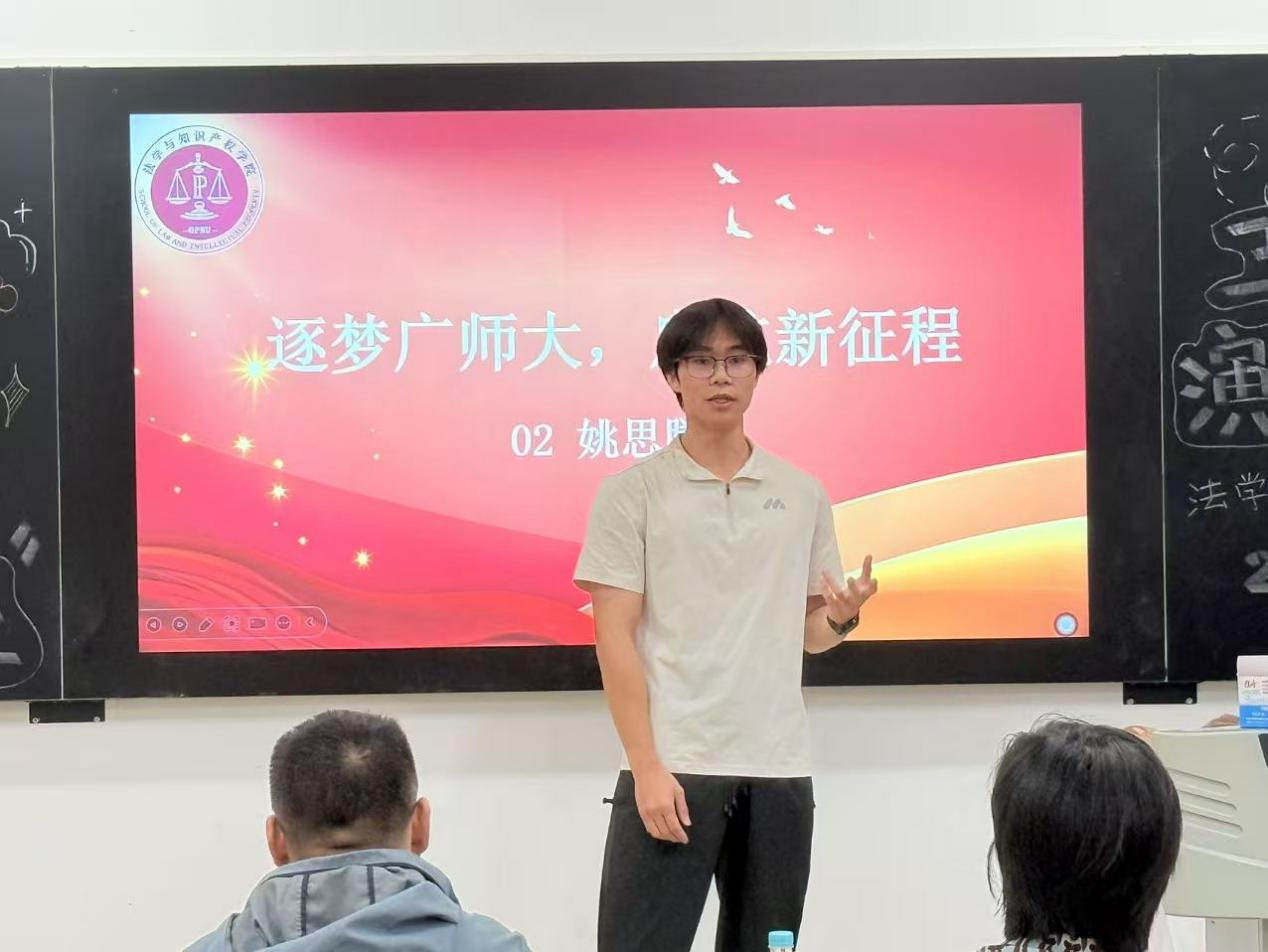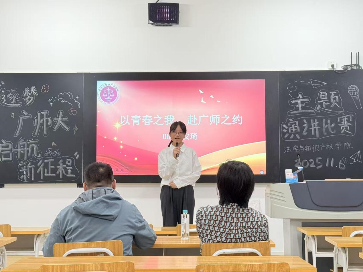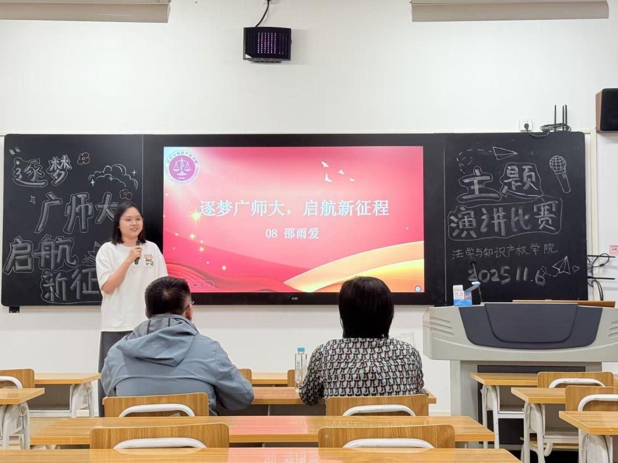 为深入学习贯彻党的二十届四中全会精神,积极践行新时代新风尚,彰显法知学子品格风貌,顺应时代发展育人铸魂,11月6日,我院在河源校区举办“逐梦广师大,启航新征程”主题演讲比赛。我院王嘉晨老师、李想老师与2025级新生参加本次活动。