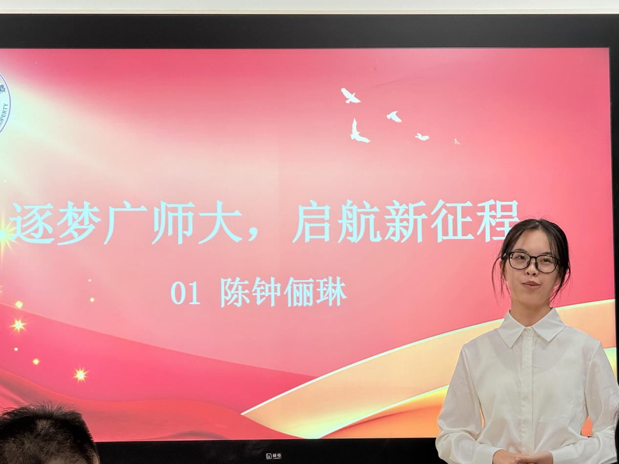 我院将始终以立德树人为育人出发点,加强校史校情教育,让学生在有历史、有特色、有速度、有理想的广师大坚定理想信念,努力成为“做人好、身体好、就业好”的“三好”学生,共同书写法知学子与广师大共成长的逐梦故事。