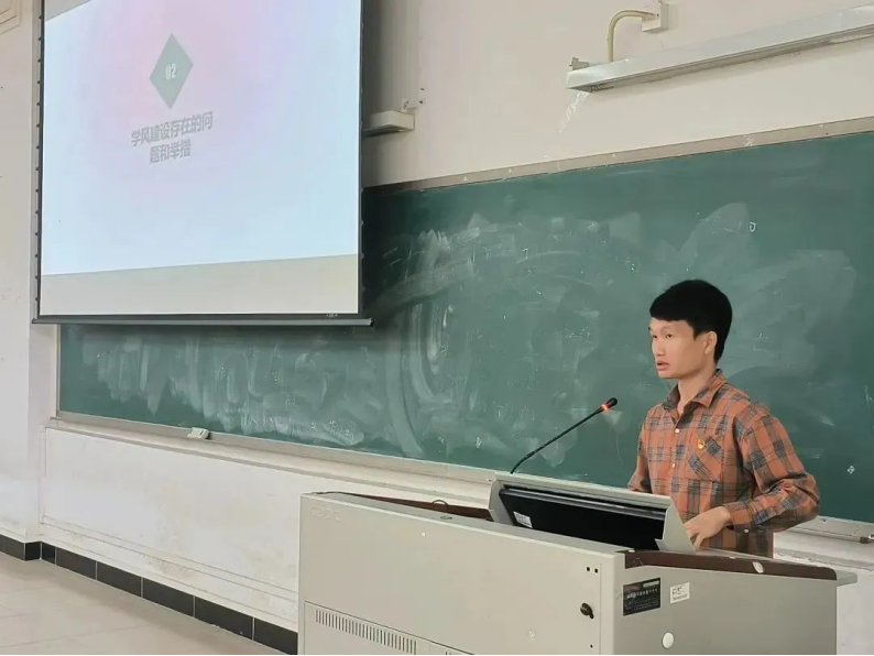 辅导员老师伍龙妙对近期学风建设检查中发现的问题进行了通报。明确学生党员(干部)每周至少两次探访挂靠宿舍,协助做好党的二十大精神的宣讲工作,用身边事教育身边人,促进自我学习,深化自我教育、实现自我成长,带动身边的同学真正把党的二十大精神内化于心、外化于行,更好地团结引领广大青年学生听党话、跟党走,争做有思想、敢担当、能吃苦、肯奋斗的时代新人。