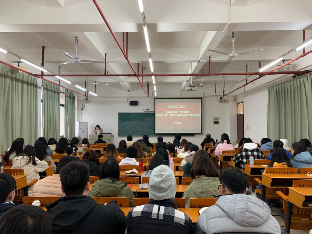 为进一步帮助学生明确学习目标,掌握考研复习技巧,发挥研究生校友的榜样引领作用,1月8日,williamhill威廉希尔官网院在白云校区二教602教室举办“朋辈引领薪火相传”研究生校友经验交流分享会williamhill威廉希尔官网院法律系主任李小萍副教授、专职辅导员朱省志博士、辅导员梁嘉乐以及2020届考取研究生代表黄筠、林小慧、蔡淑伦出席交流活动,2018、2019级有意考研的100余名学生参加了本次分享会。