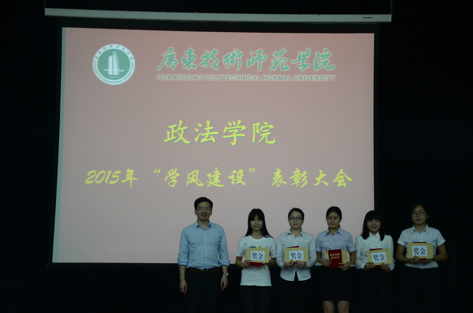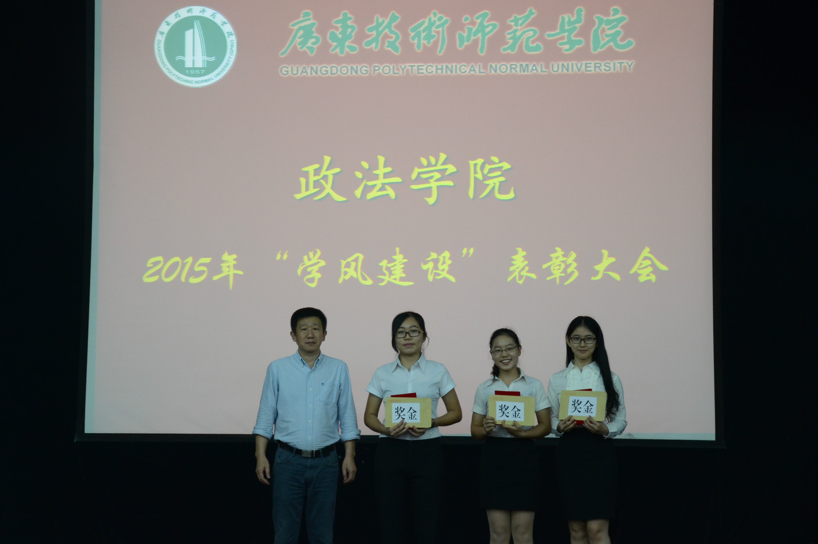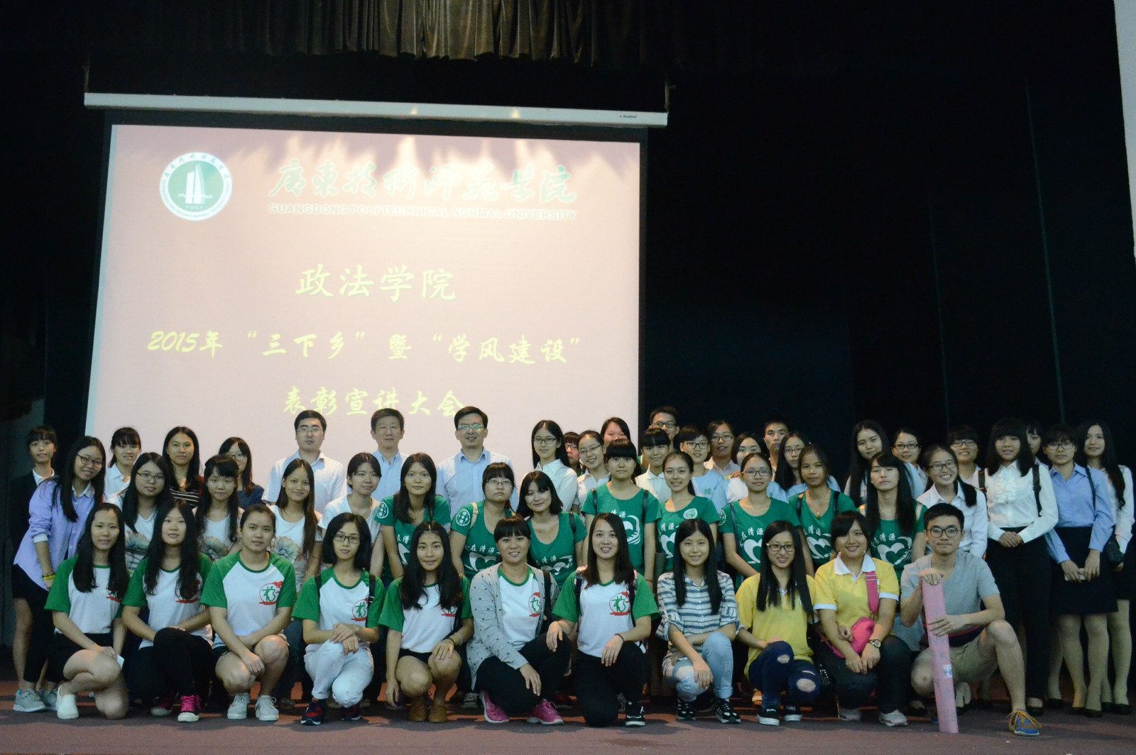 2015年11月18日晚上19点,政法学院在大礼堂举行2015年“三下乡”暨“学风建设”表彰宣讲大会,政法学院党委陈宏伟书记、陈军副书记,辅导员赵利老师、赵璐老师以及刘文静老师出席了本次活动。