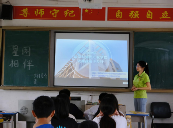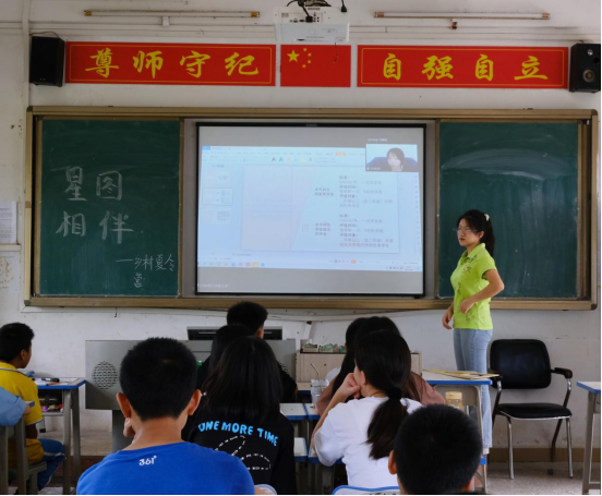助学助理陈钰在线下给骆湖镇参加“星图相伴”乡村夏令营的初中学生们简述本专科生国家助学金。她向同学们介绍道,国家助学政策资助对象是家庭经济困难的普通高校全日制本专科学生,资助内容包括广东省家庭经济困难大学新生资助、广东省少数民族聚居区少数民族大学生资助、南粤扶残助学工程以及“绿色通道”。通过陈钰的讲解,同学们第一次了解到大学的助学政策,明白了如今并不需要担心考上大学后交不起学费的问题。