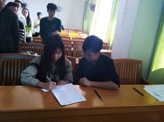 会上,助学工作组成员沈俊英围绕贷款与还款作了发言,白云飞老师针对诚信贷还款对相关问题作了强调。贷款诚信教育结束后,所有申请贷款的同学在白老师和全体助学工作组成员的监督指导下逐个完成了贷款合同的签订工作。